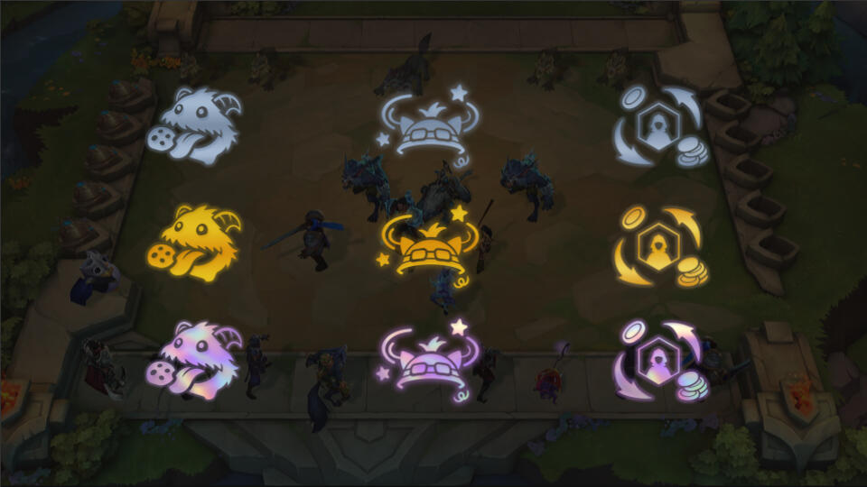 Each element was crafted to express the set’s personality through clear, readable visuals while staying true to Teamfight Tactics’ established art direction.